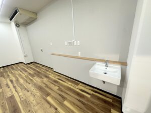 また、手洗いスペースやトイレまわりも整備し、日常的に使いやすく清潔感のある設備へと改善しています。